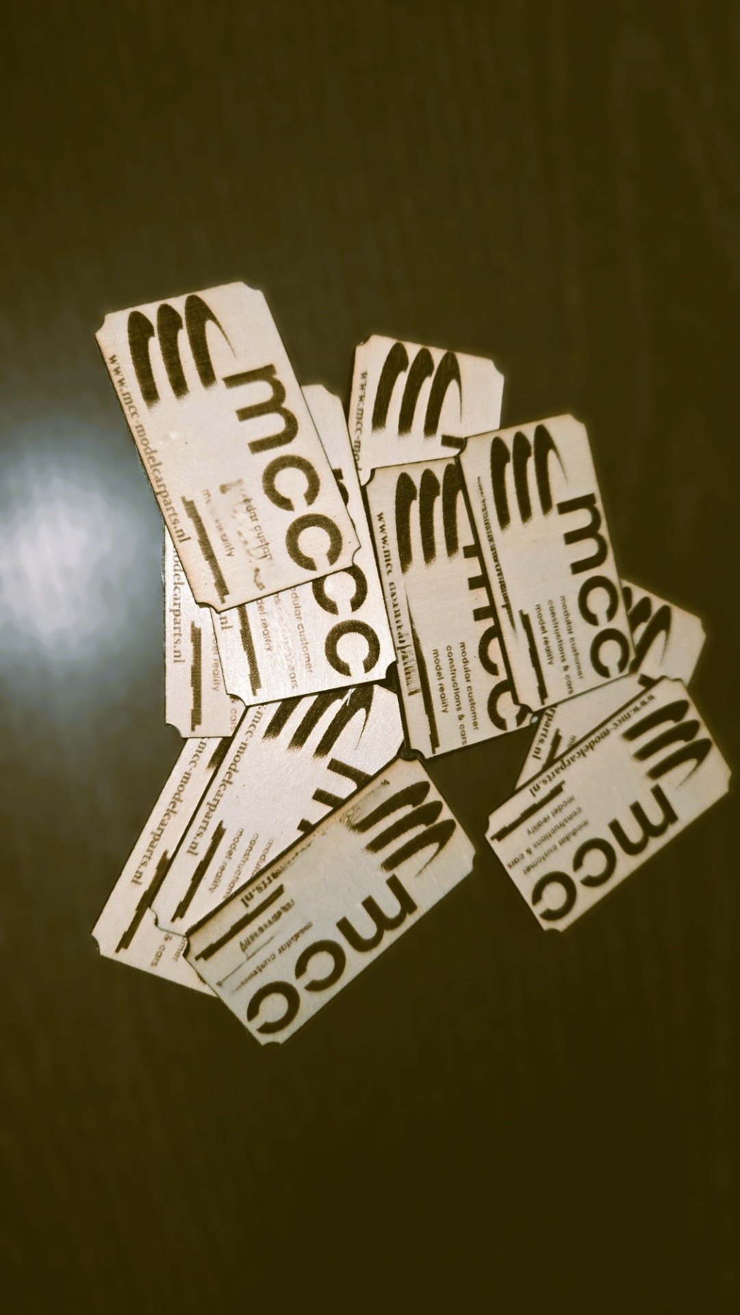 Luxe visite kaartjes op hout minimale afname van 10 / 3.00 pst