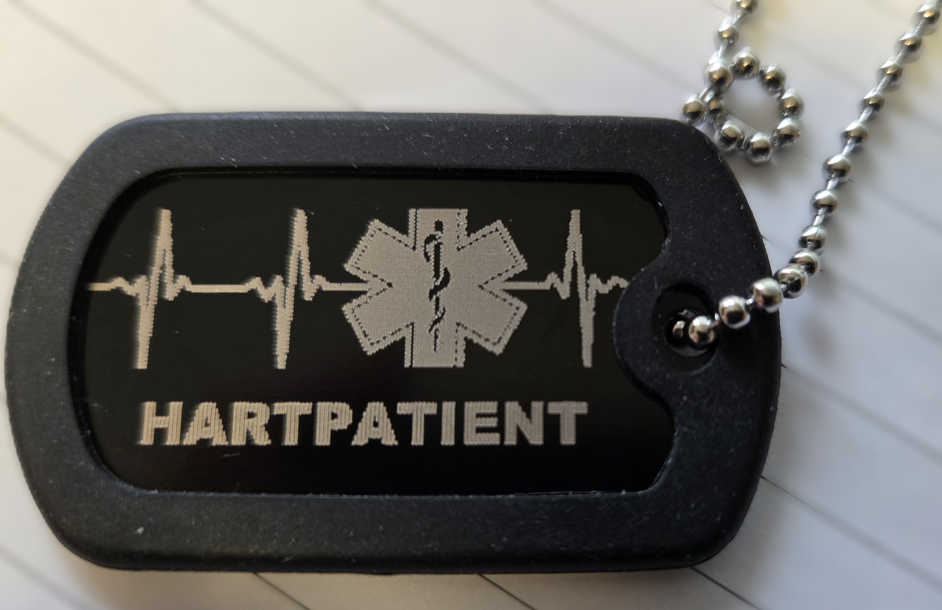 Gebruik als medische identificatiehanger? Meld dit via e-mail bij uw bestelling. Uw gegevens worden na vervaardiging direct vernietigd.